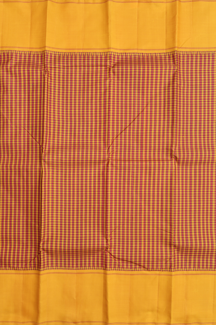 Kanchipuram Silk Saree In Red And Yellow With Checks Design
