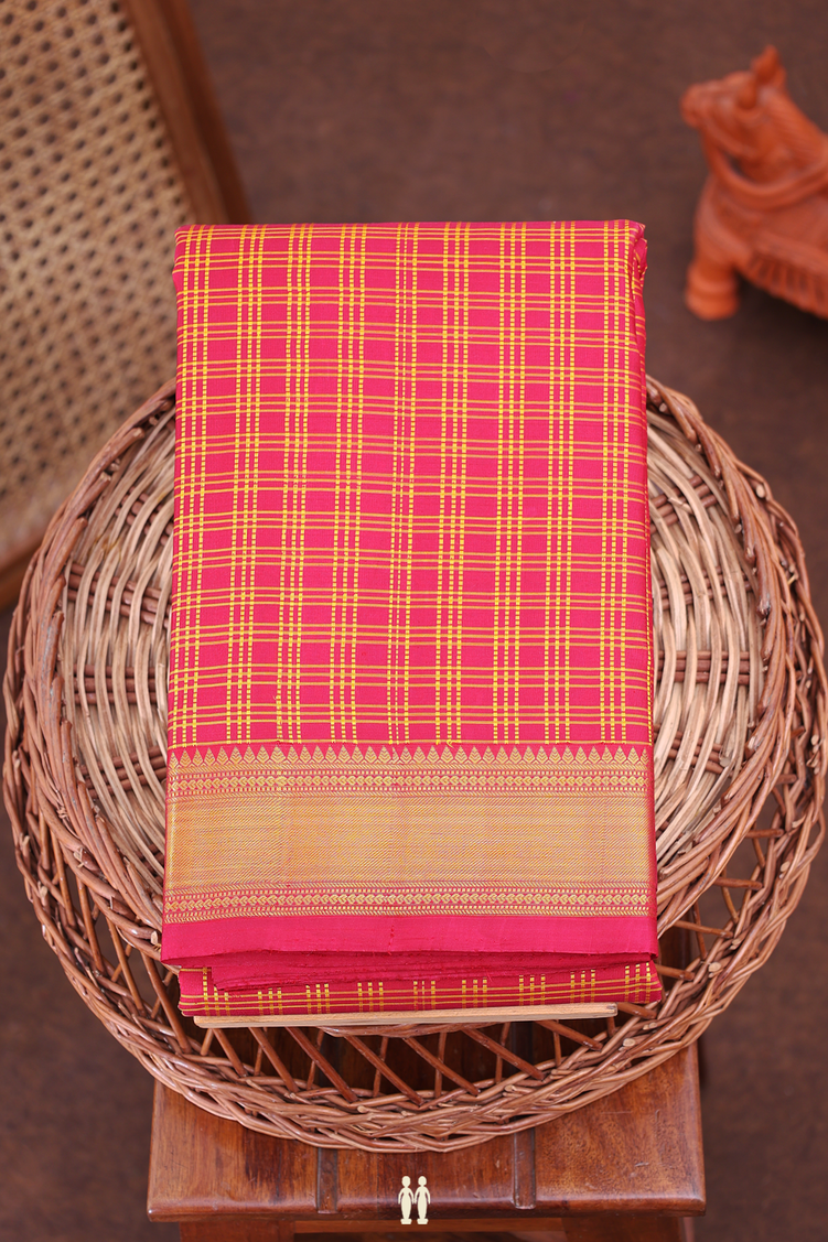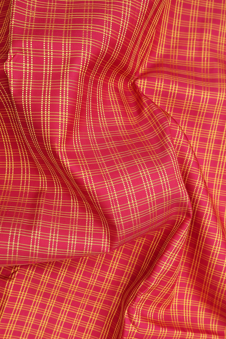 Experience timeless elegance with this kanchipuram silk saree in a rich red hue, adorned with a classic checks design. Crafted from premium silk, it offers a lustrous finish and a smooth, luxurious drape. Perfect for festive occasions or formal events, this saree blends traditional craftsmanship with refined style to elevate your wardrobe with grace and sophistication.