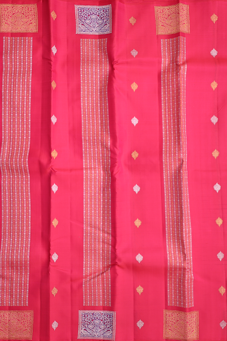 Kanchipuram Silk Saree In Red With Stripes Along Buttas