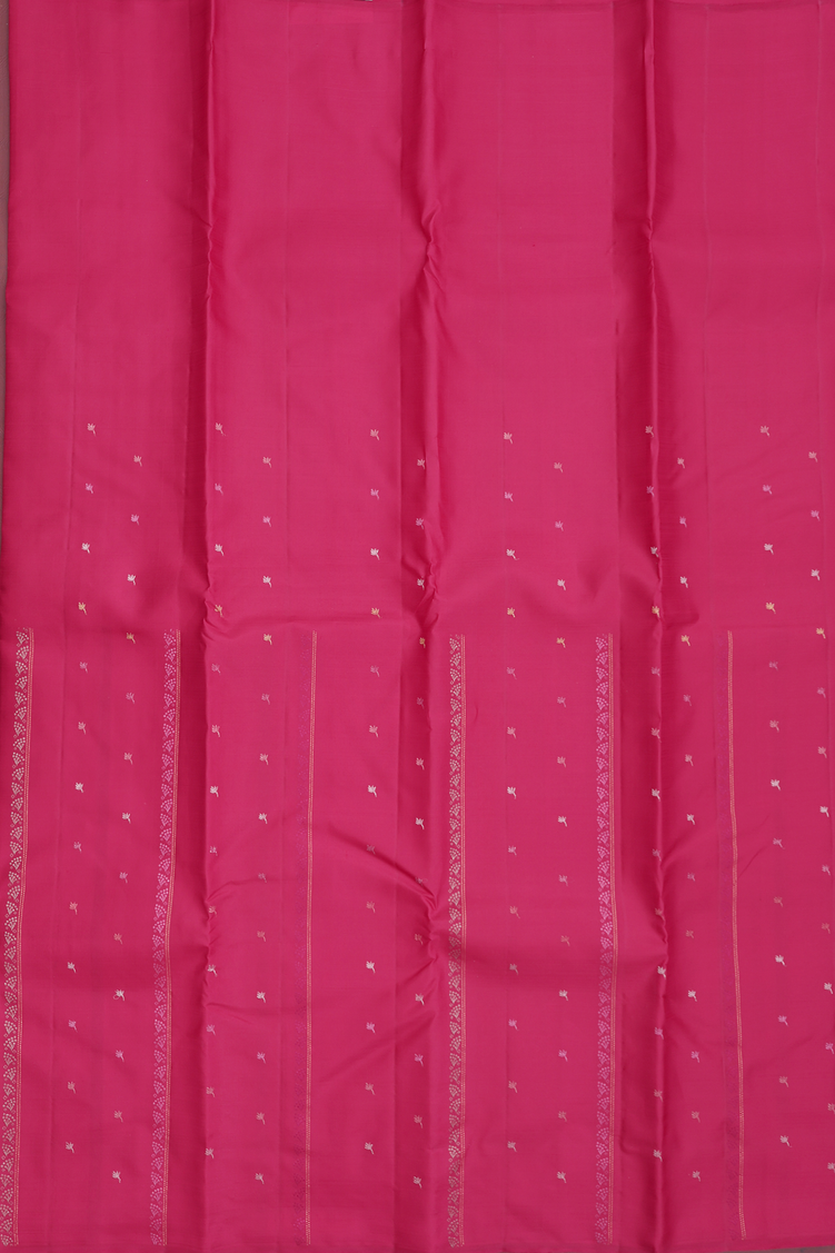 Kanchipuram Silk Saree In Red With Stripes Along Buttis