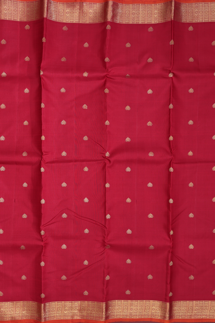 Kanchipuram Silk Saree In Red With Zari Buttas