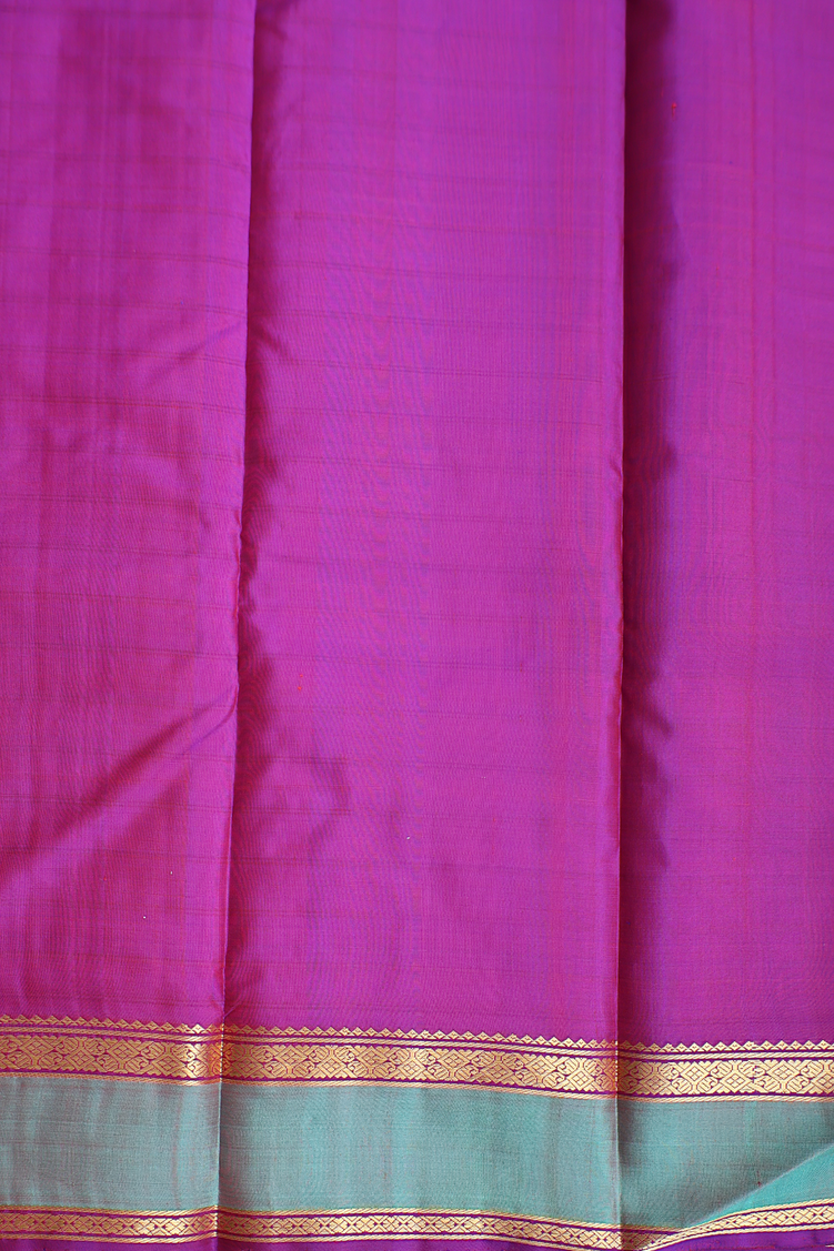 Kanchipuram Silk Saree In Reddish Pink With Checks Design