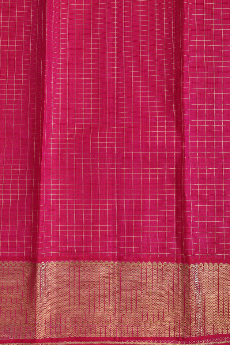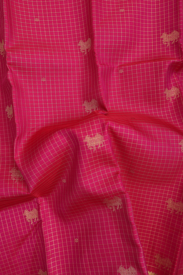 Kanchipuram Silk Saree In Rose Red With Checks Along Buttas