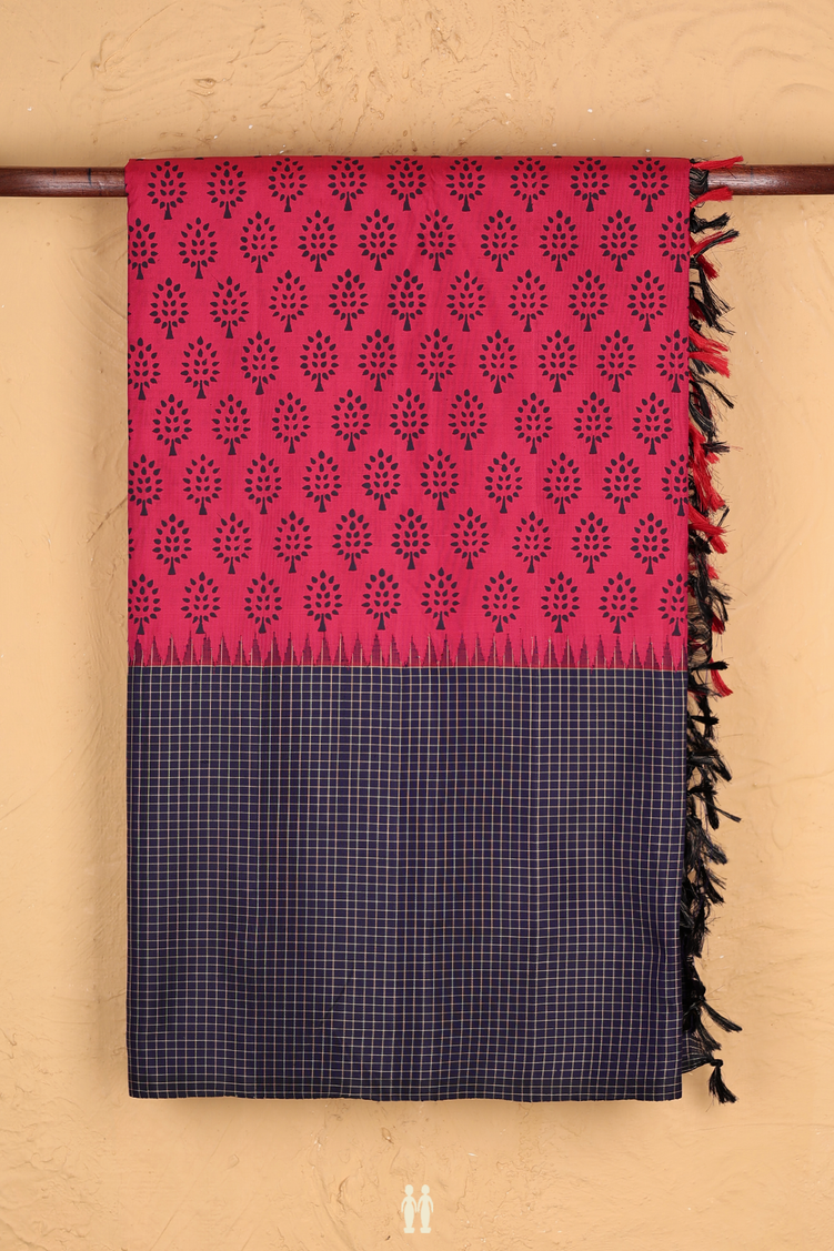 Kanchipuram Silk Saree In Rose Red With Printed Design