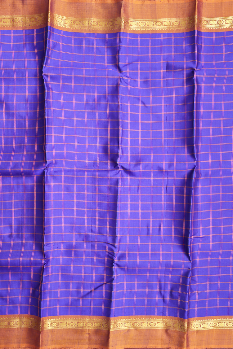 Kanchipuram Silk Saree In Royal Blue With Checks Design