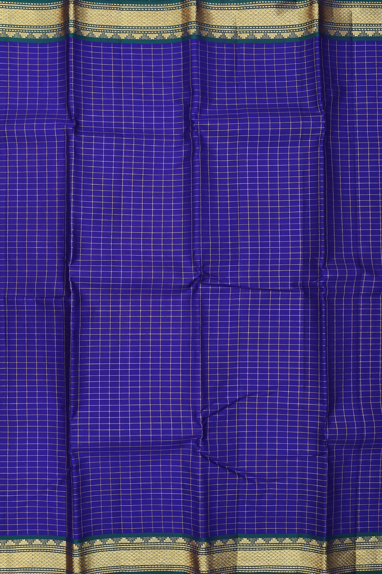 Kanchipuram Silk Saree In Royal Blue With Checks Design