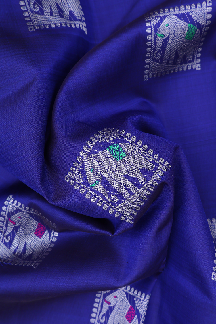 Kanchipuram Silk Saree In Royal Blue With Elephant Motifs