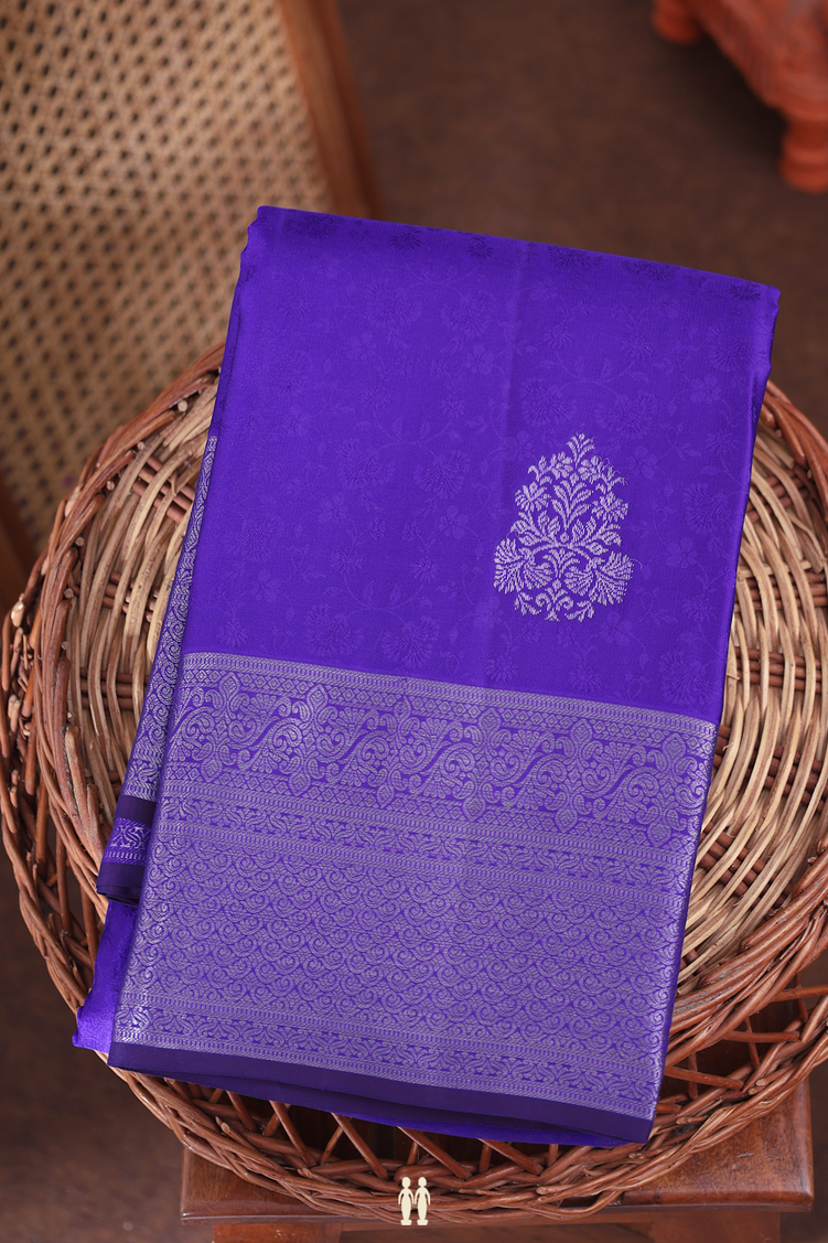 Kanchipuram Silk Saree In Royal Blue With Jacquard Pattern