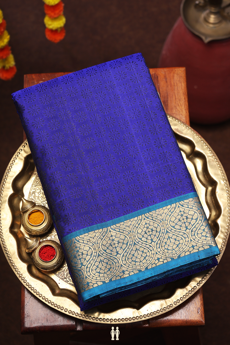 Kanchipuram Silk Saree In Royal Blue With Jacquard Pattern