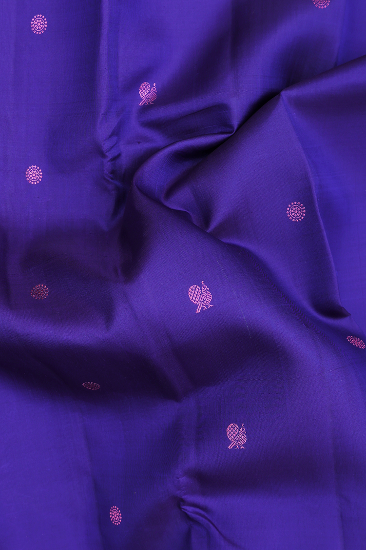 Kanchipuram Silk Saree In Royal Blue With Peacock Buttas