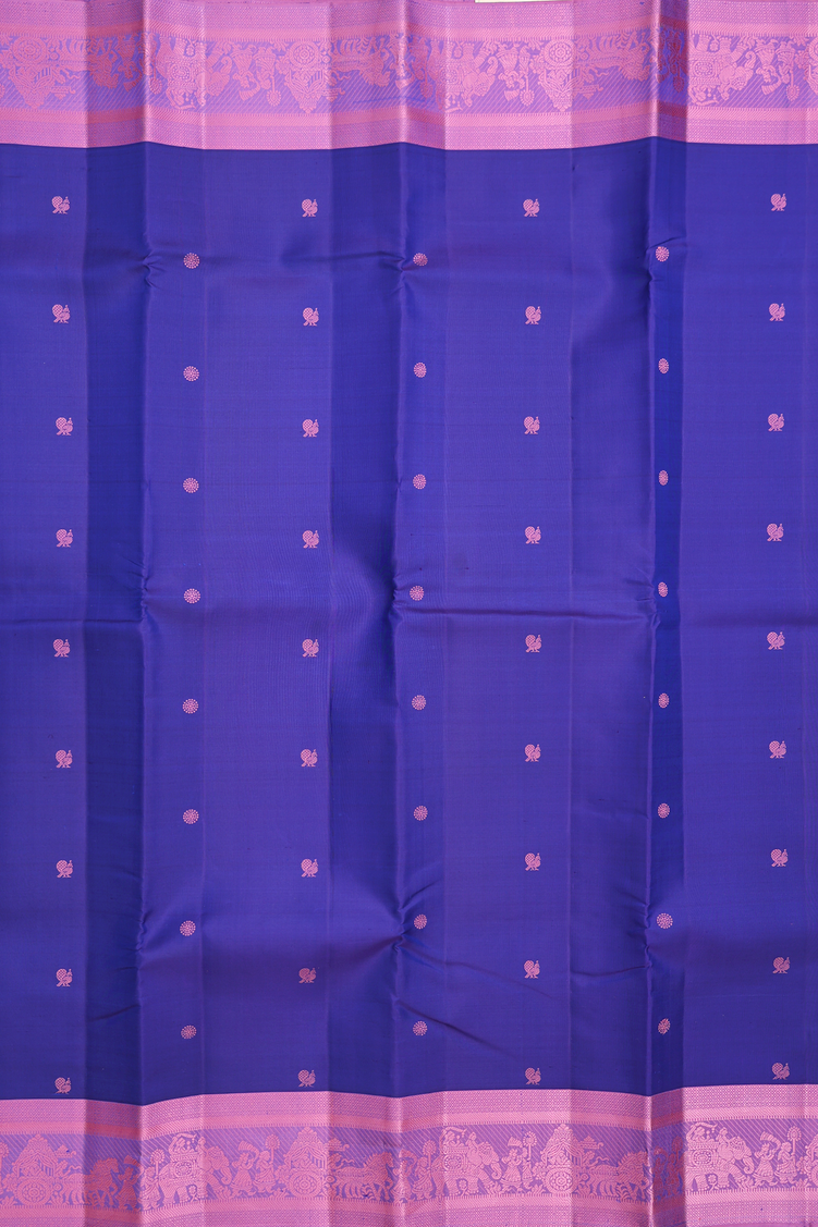 Kanchipuram Silk Saree In Royal Blue With Peacock Buttas
