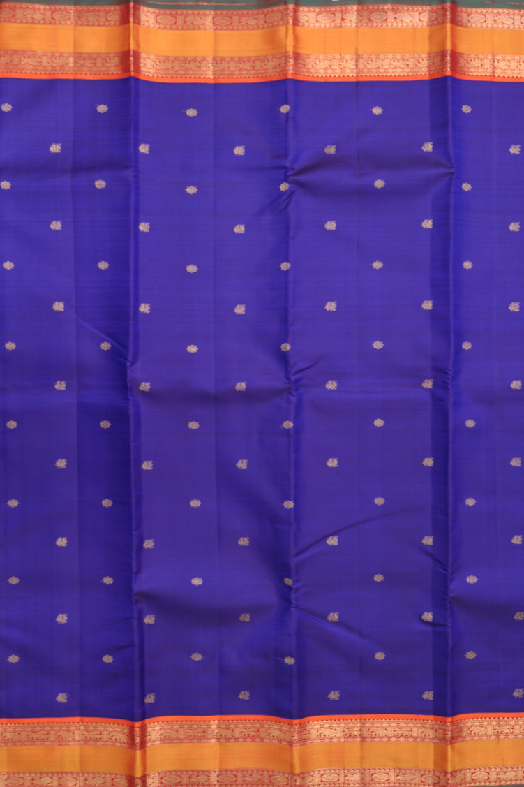Kanchipuram Silk Saree In Royal Blue With Peacock Buttas