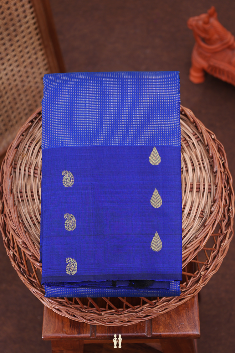 Kanchipuram Silk Saree In Royal Blue With Stripes Design