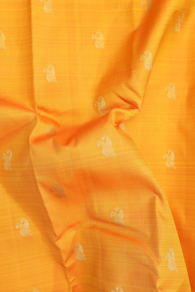 Kanchipuram Silk Saree In Royal Orange With Paisley Buttas
