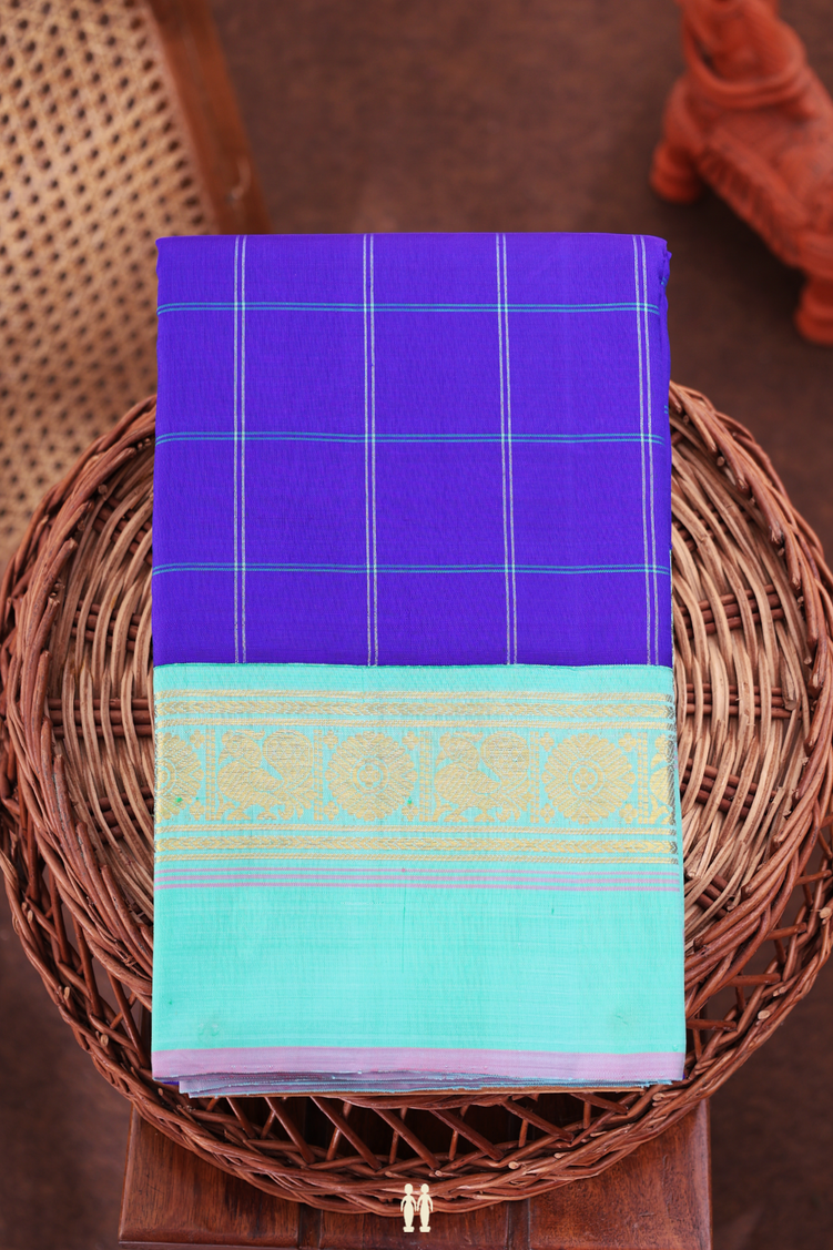 Kanchipuram Silk Saree In Indigo Blue With Checks Design