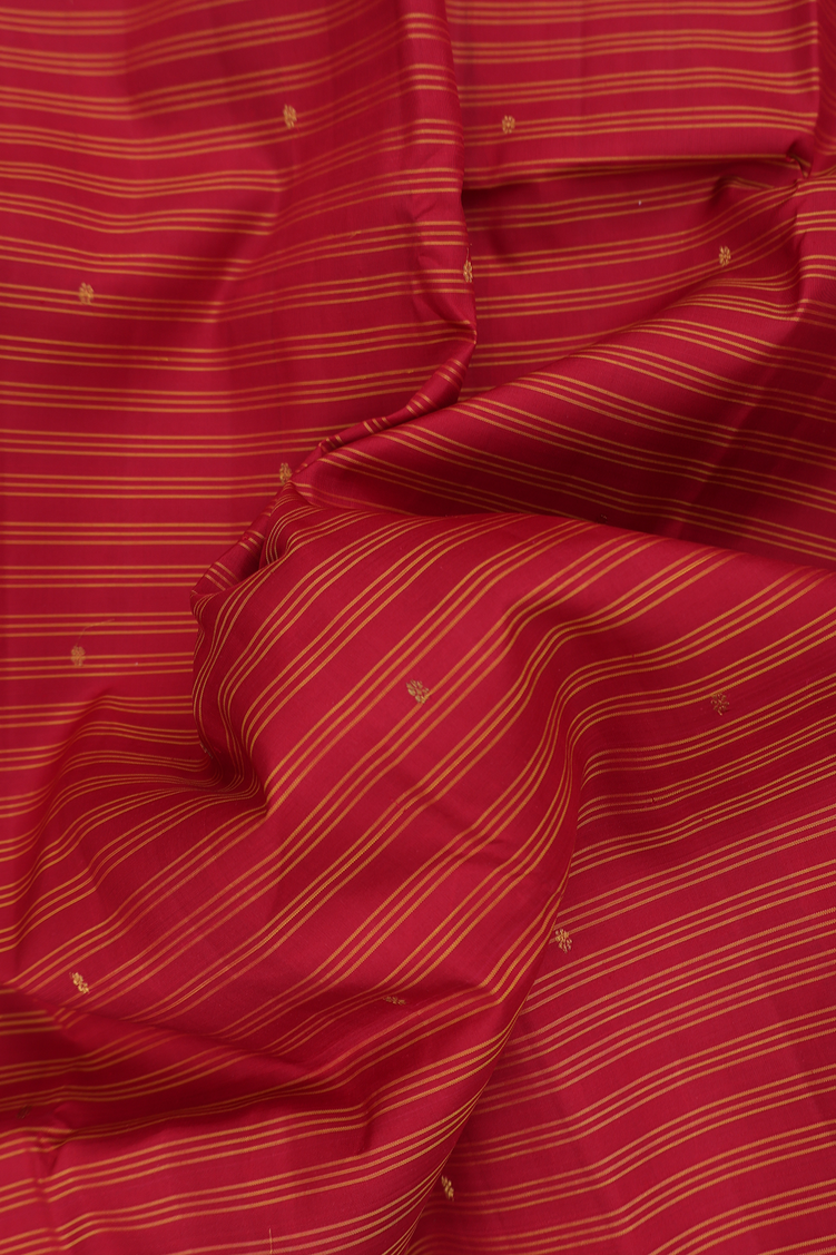 Kanchipuram Silk Saree In Ruby Red With Stripes Design