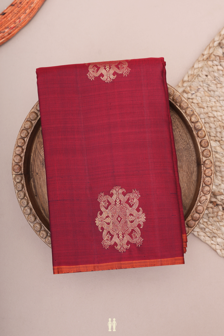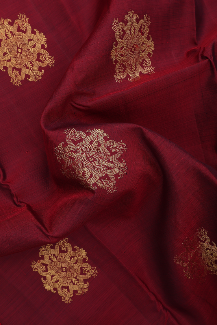 Kanchipuram Silk Saree In Ruby Red With Zari Motifs