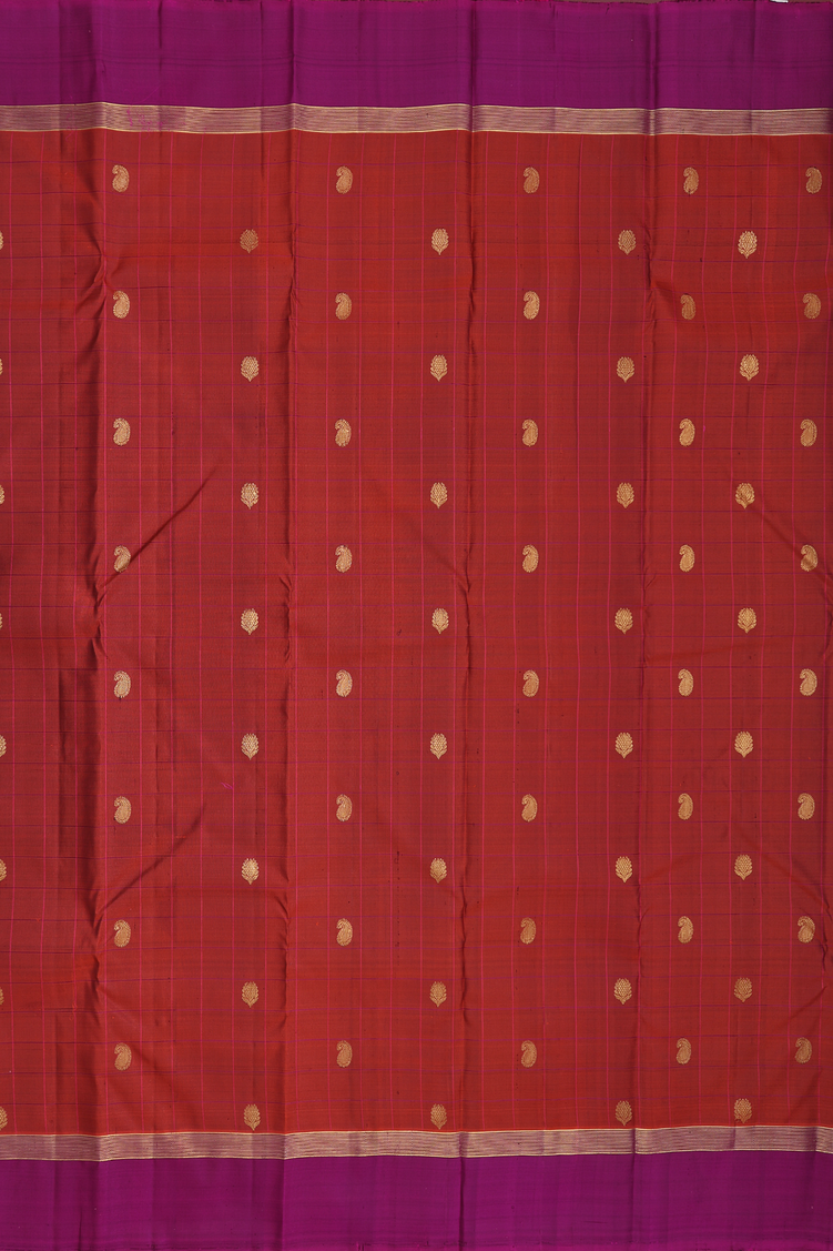 Kanchipuram Silk Saree In Rust Red Along Checks With Buttas