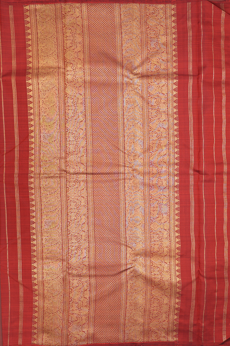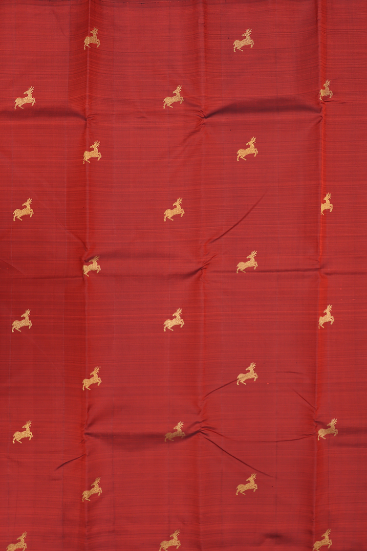 Kanchipuram Silk Saree In Rust Red With Deer Buttas