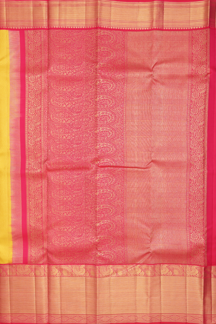 Kanchipuram Silk Saree In Saffron Yellow With Brocade Design