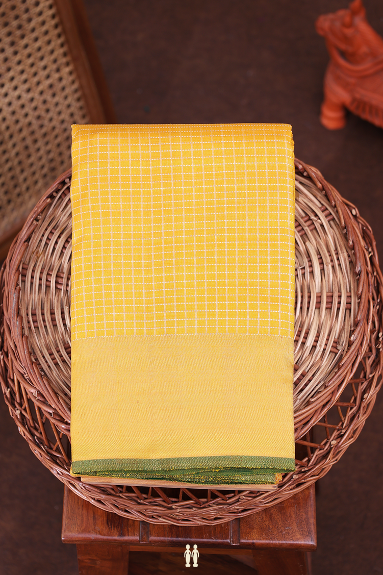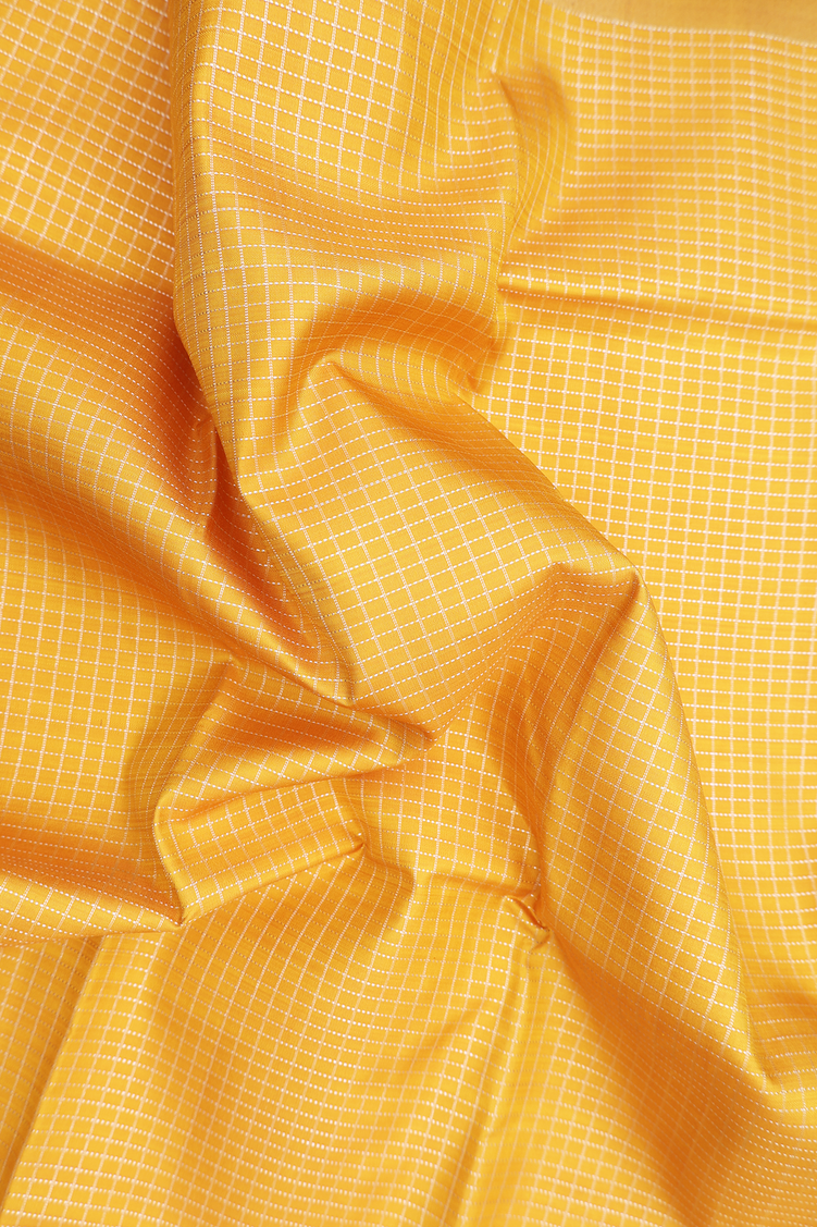 Kanchipuram Silk Saree In Saffron Yellow With Checks Design
