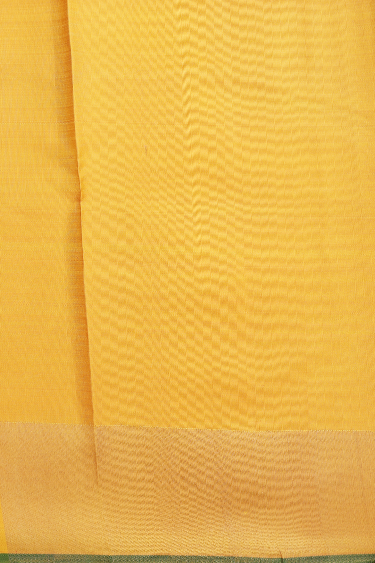 Elevate your elegance with this exquisite kanchipuram silk saree in a radiant saffron yellow with zari border completed by green selvedge. Featuring a timeless checks pattern, it blends traditional craftsmanship with a refined design, perfect for festive occasions and formal gatherings. The rich silk fabric ensures a graceful drape and subtle sheen, making this saree a distinguished addition to your wardrobe.