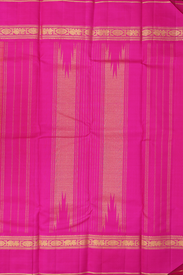 Kanchipuram Silk Saree In Saffron Yellow With Checks Design
