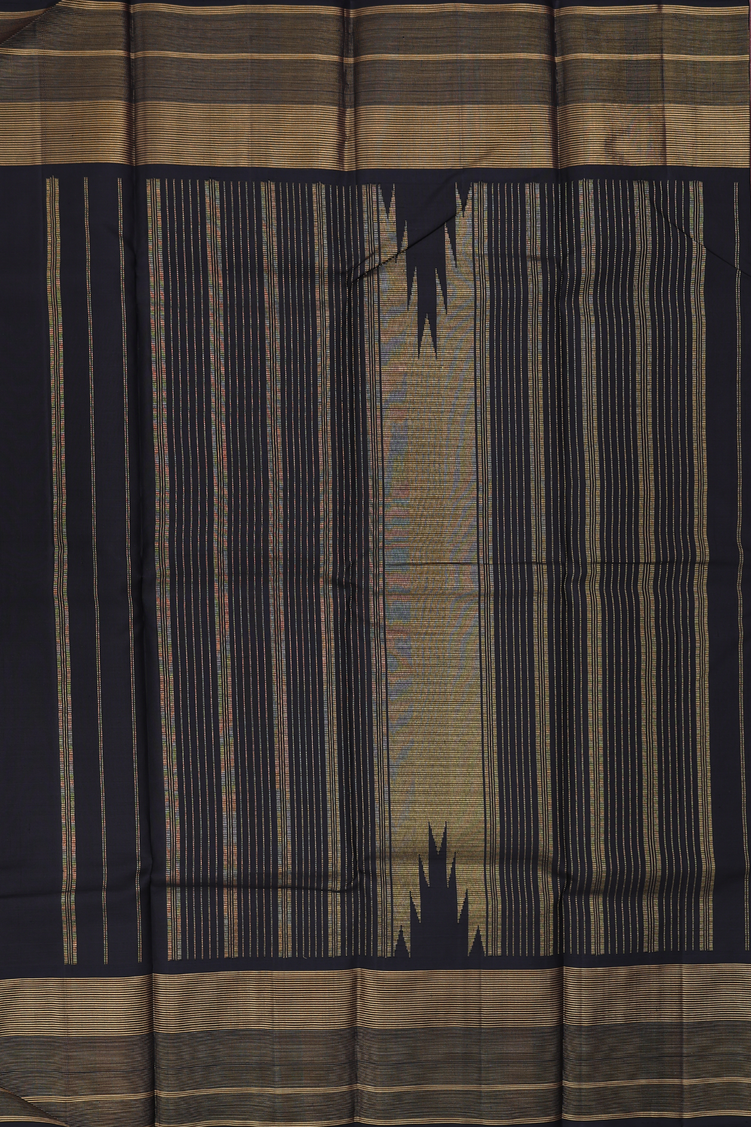 Kanchipuram Silk Saree In Saffron Yellow With Checks Design