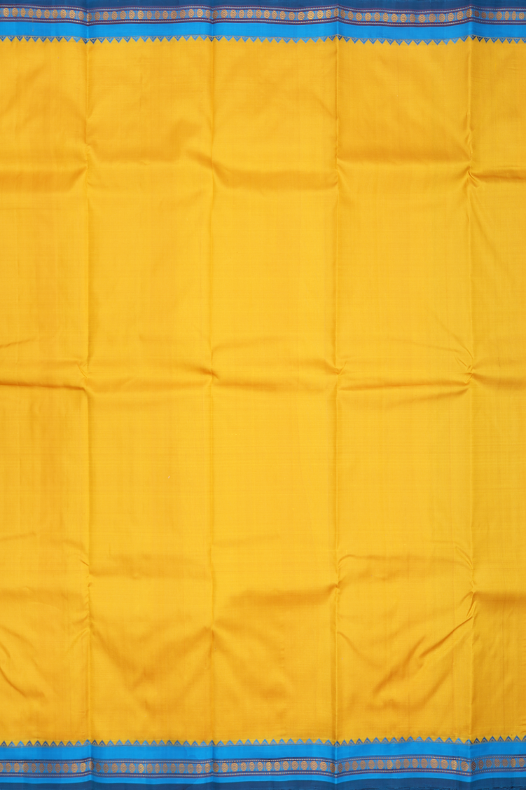 Kanchipuram Silk Saree In Saffron Yellow With Contrast Border