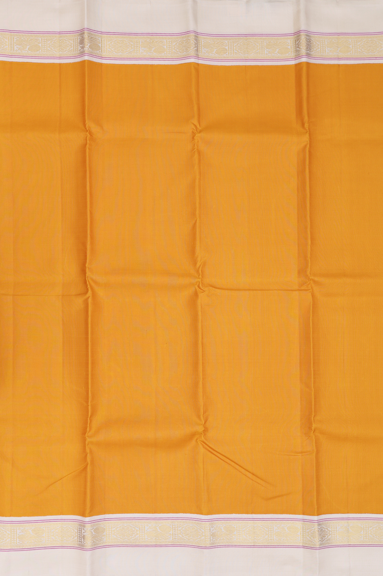 Kanchipuram Silk Saree In Ochre Orange With Contrast Border