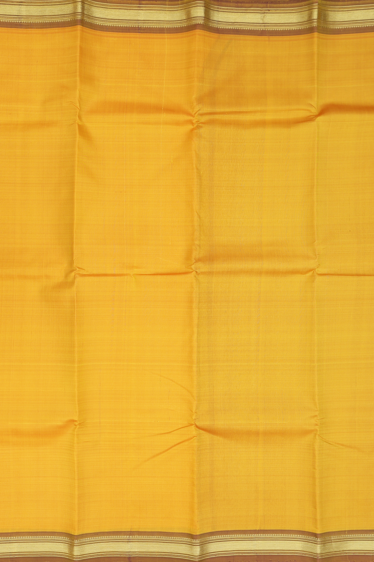Kanchipuram Silk Saree In Saffron Yellow With Contrast Border