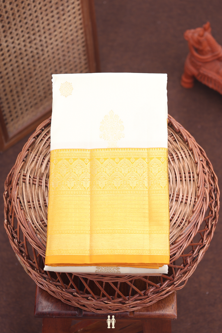 Kanchipuram Silk Saree In White With Floral Buttas