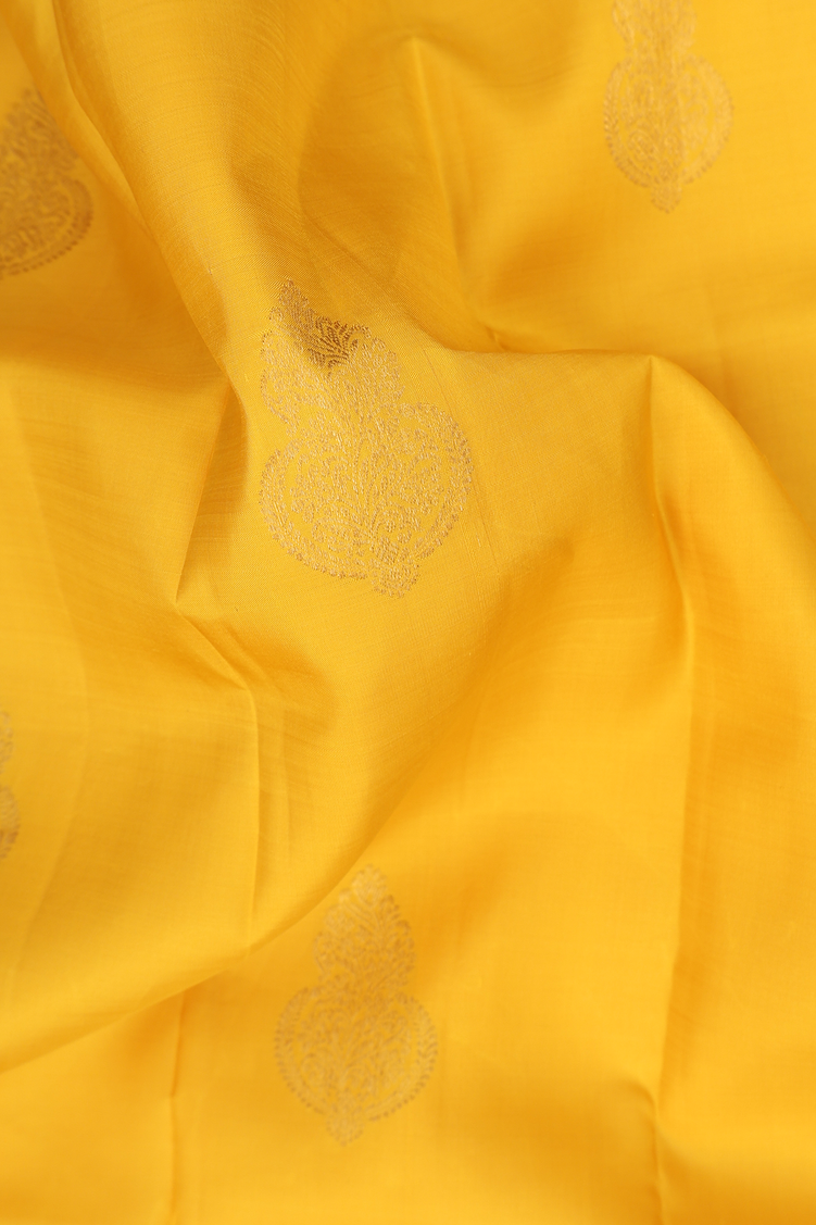Kanchipuram Silk Saree In Saffron Yellow With Zari Buttas
