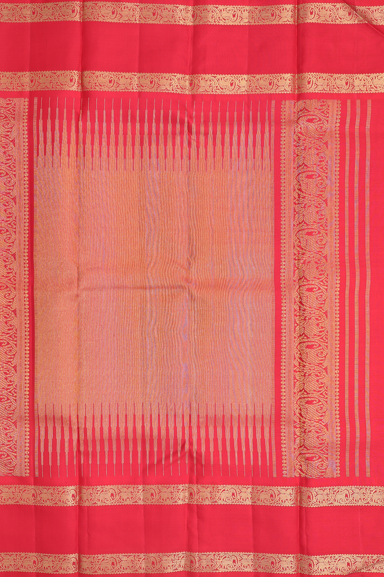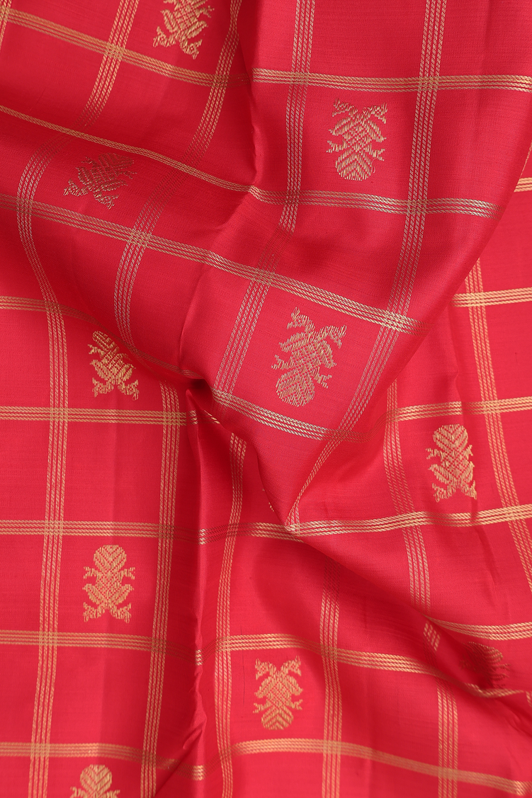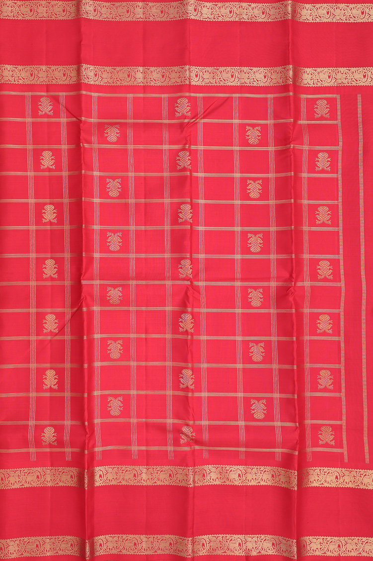 Kanchipuram Silk Saree In Scarlet Red With Checks Design