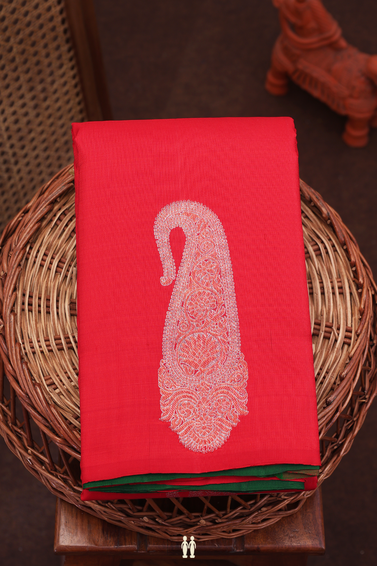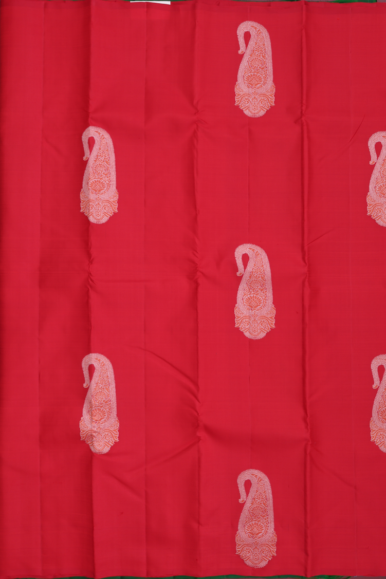 Kanchipuram Silk Saree In Scarlet Red With Paisley Motifs