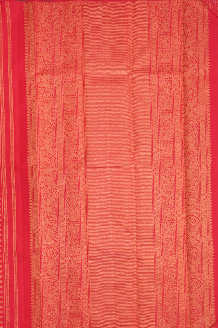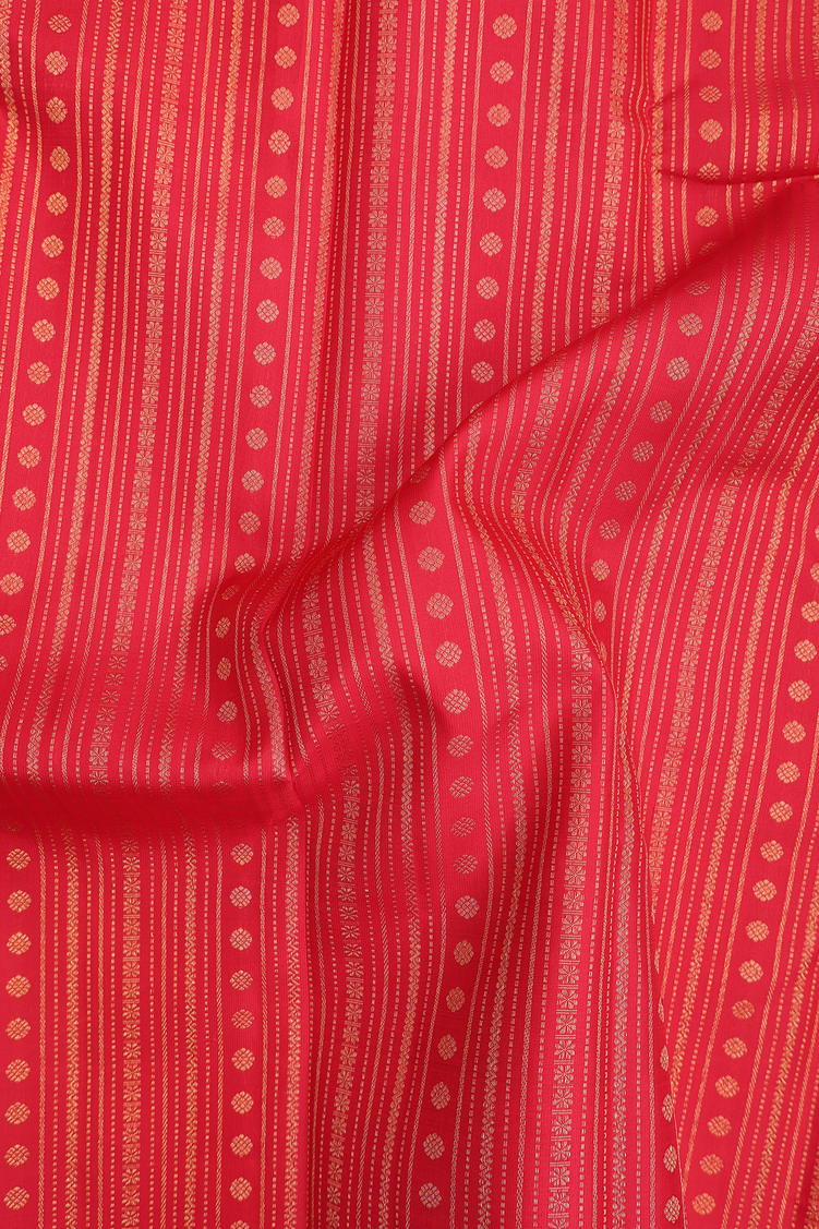 Kanchipuram Silk Saree In Scarlet Red With Stripes Design