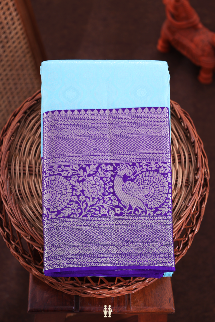 Kanchipuram Silk Saree In Sky Blue Tissue With Zari Design