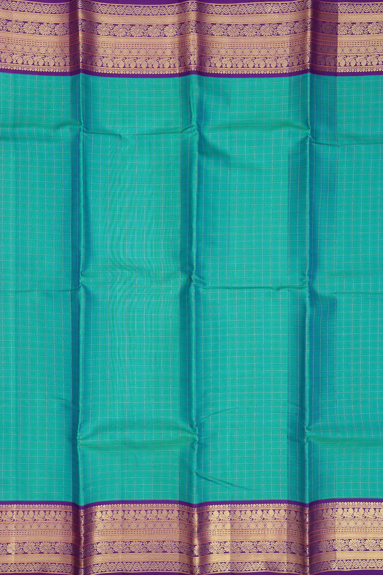 Kanchipuram Silk Saree In Teal Blue With Checks Design