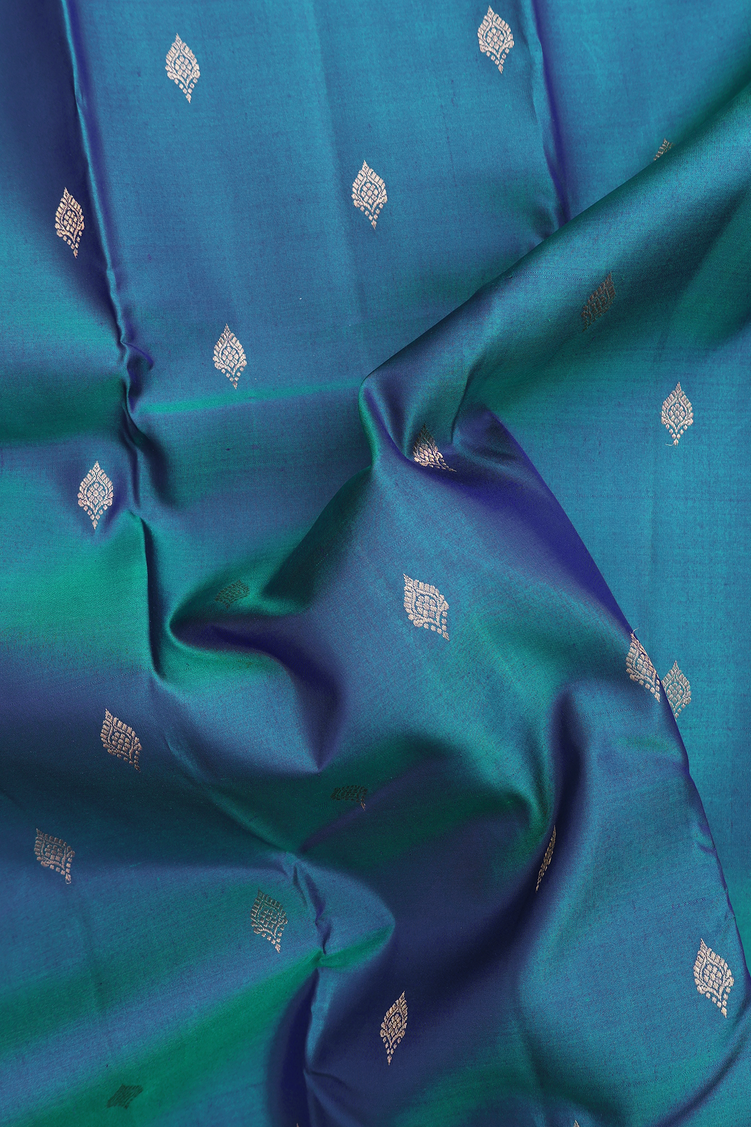 Kanchipuram Silk Saree In Teal Blue With Zari Buttas