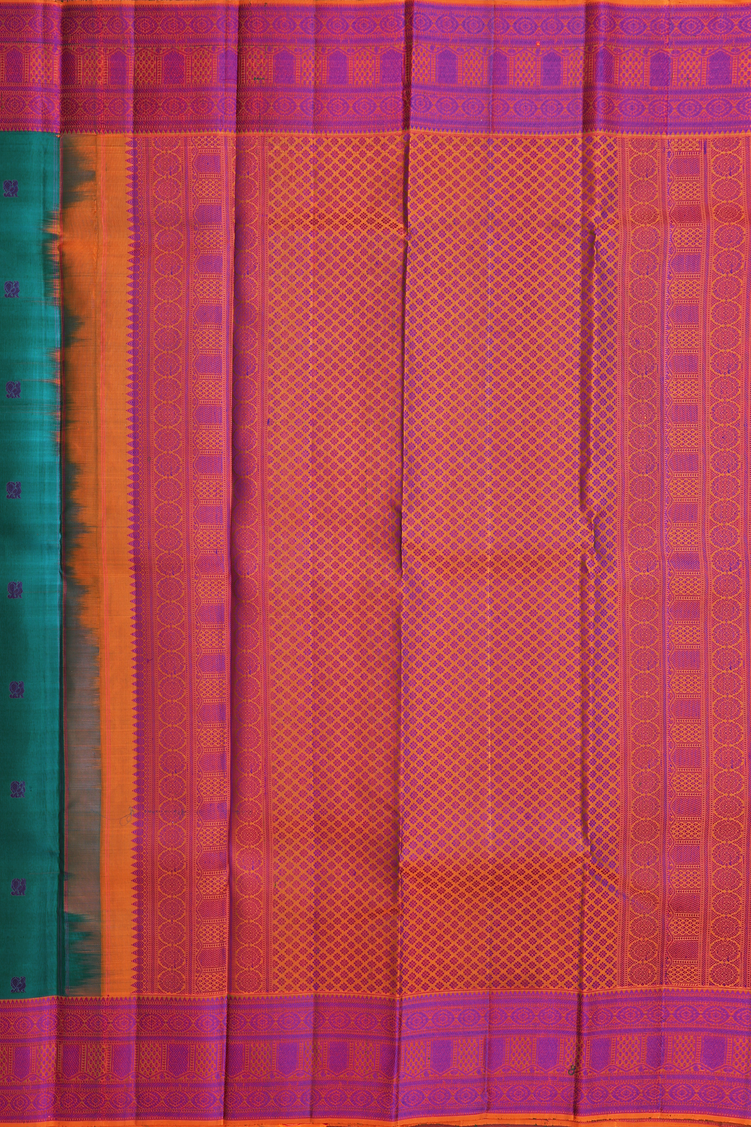 Kanchipuram Silk Saree In Teal Green With Peacock Buttas