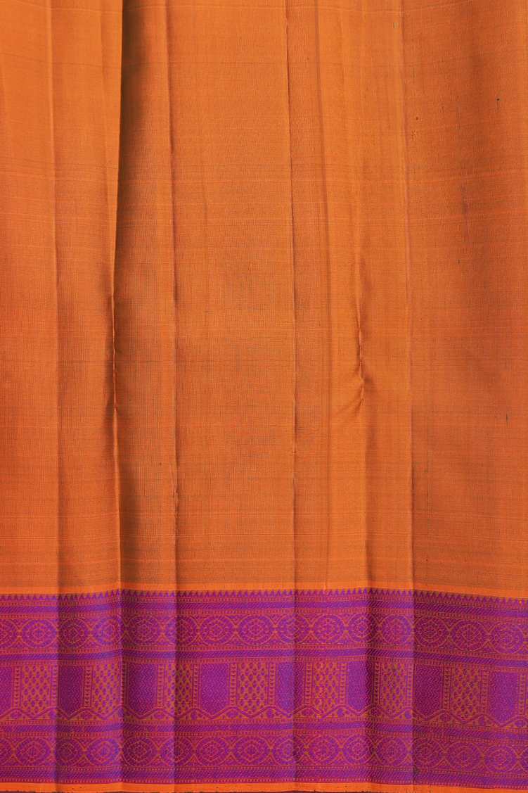 Experience timeless elegance with this kanchipuram silk saree in a rich teal green shade, adorned with intricate peacock buttas. The luxurious silk fabric offers a smooth, lustrous finish, while the traditional motifs add an exquisite touch of heritage artistry. Perfect for festive occasions and special celebrations, this saree combines classic craftsmanship with sophisticated charm for a graceful and distinguished look.