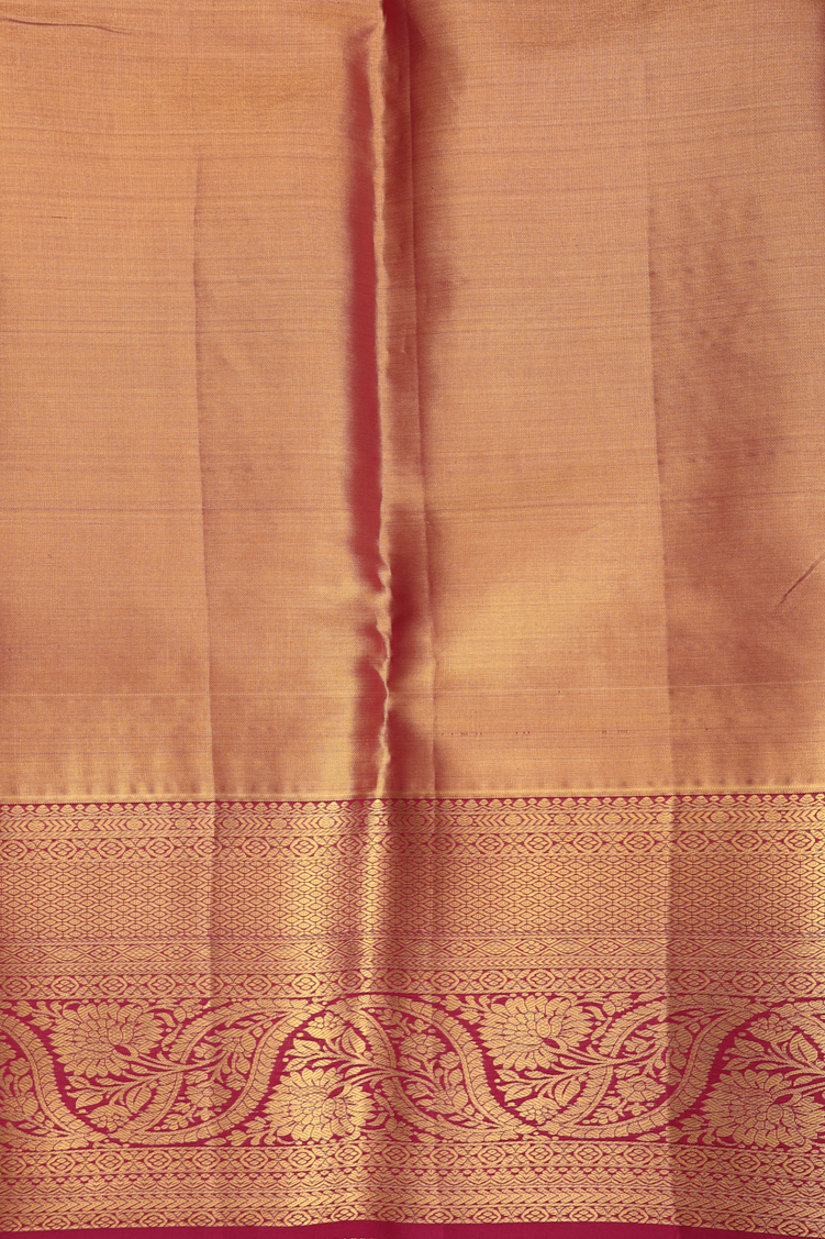 Discover the timeless elegance of this kanchipuram silk saree, crafted in shimmering tissue gold with an enchanting floral design. The saree features a stunning zari border that adds a touch of opulence and traditional grandeur to every drape. Woven with meticulous attention to detail, this handloom masterpiece showcases the rich heritage of Kanchipuram weaving. The delicate floral motifs across the body complement the ornate zari border, creating a harmonious blend of sophistication and artistry. Ideal for weddings, festivals, and celebrations, this saree offers the perfect balance of comfort and luxury. The luxurious silk fabric ensures graceful draping while the intricate zari work elevates your presence at any occasion.