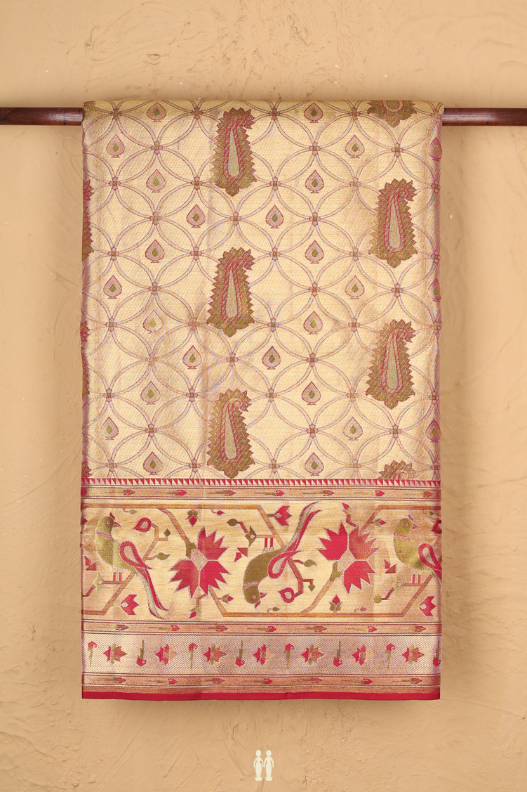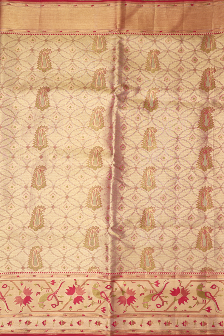 Kanchipuram Silk Saree In Tissue Gold With Paisley Design