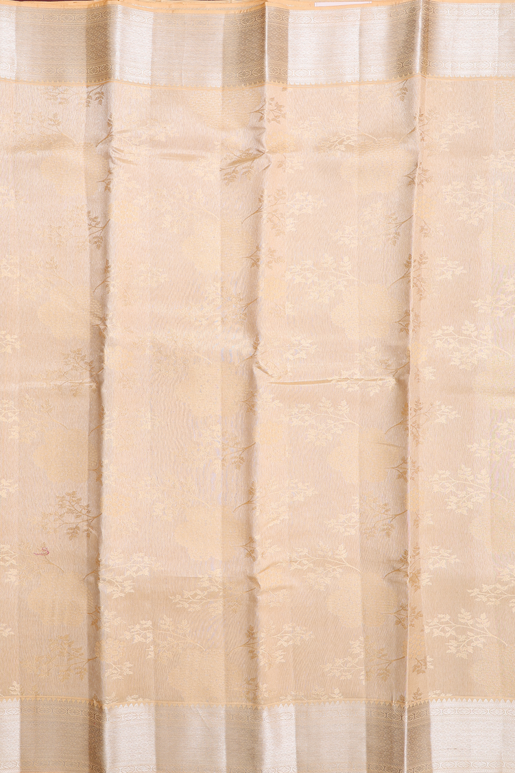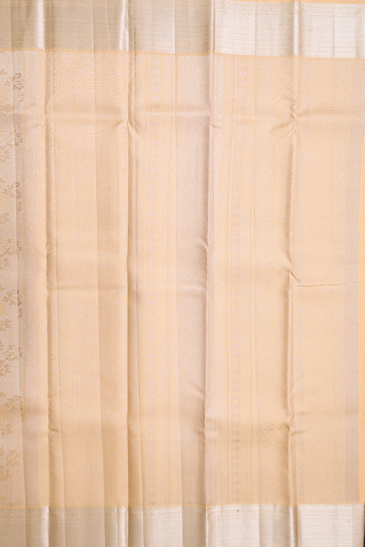 Kanchipuram Silk Saree In Tissue Pale Orange With Leaf Design