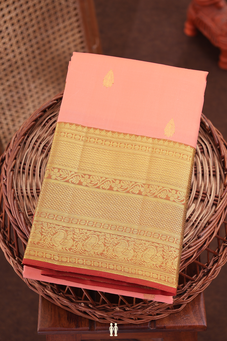 Kanchipuram Silk Saree In Tulip Pink With Zari Buttas