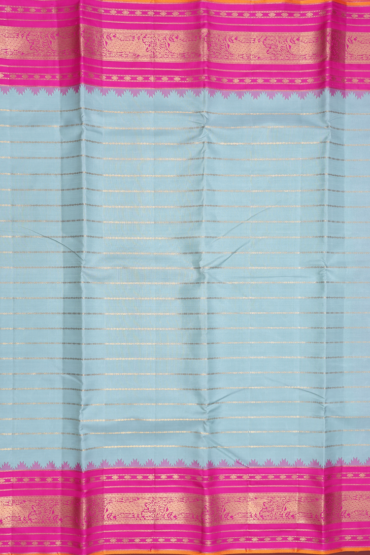 Kanchipuram Silk Saree In Turkish Blue With Stripes Design