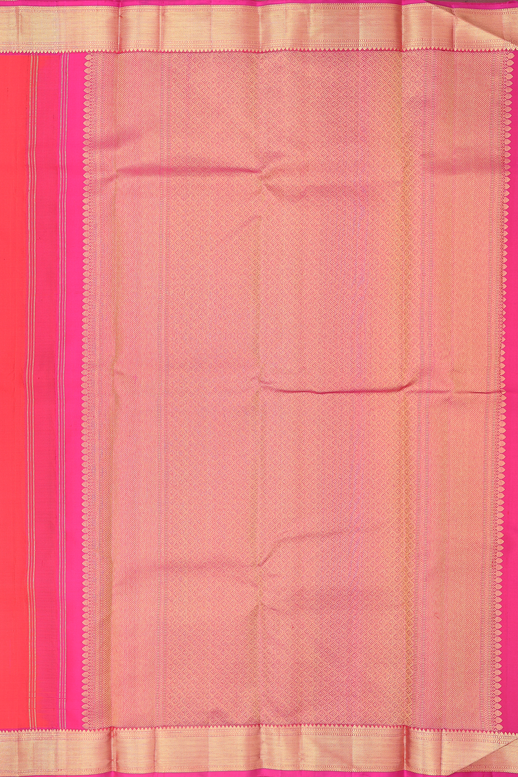 Kanchipuram Silk Saree In Vermillion Red With Peacock Buttas