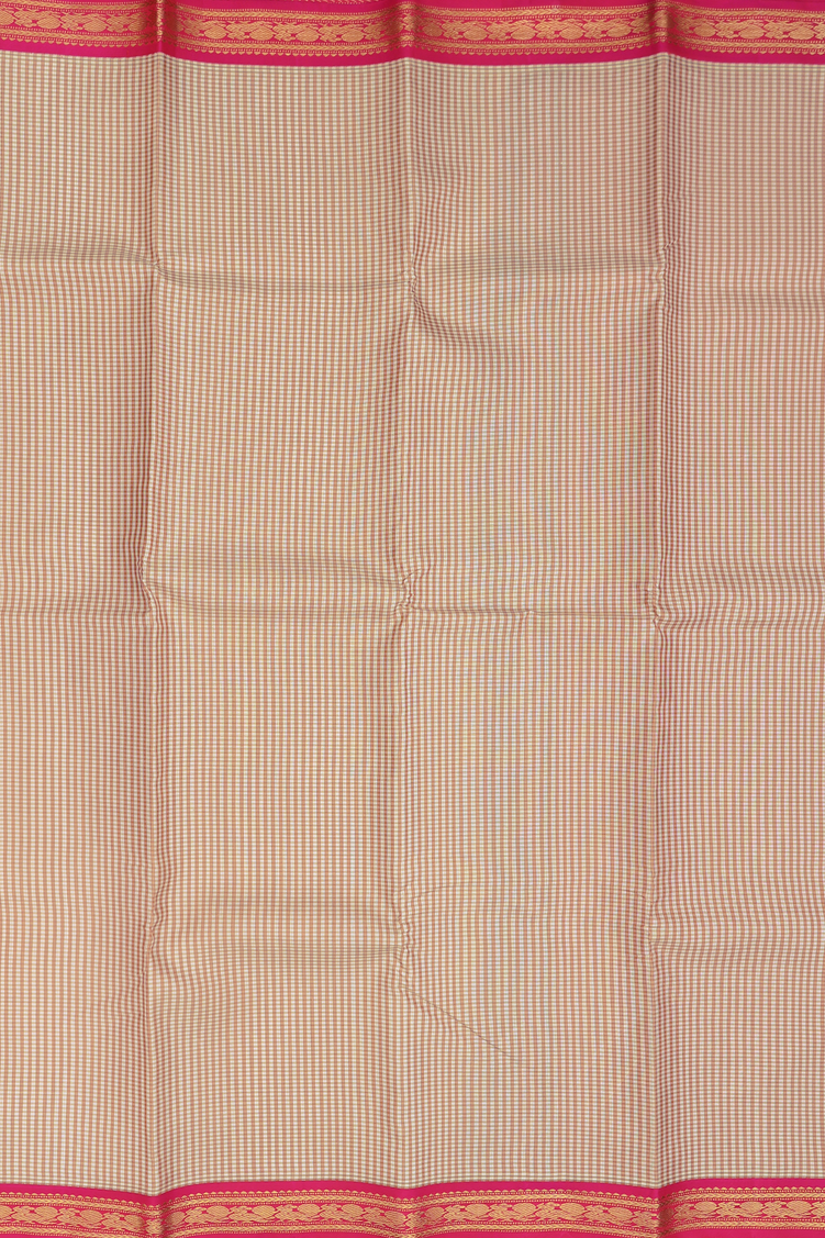 Kanchipuram Silk Saree In White And Brown With Checks Design