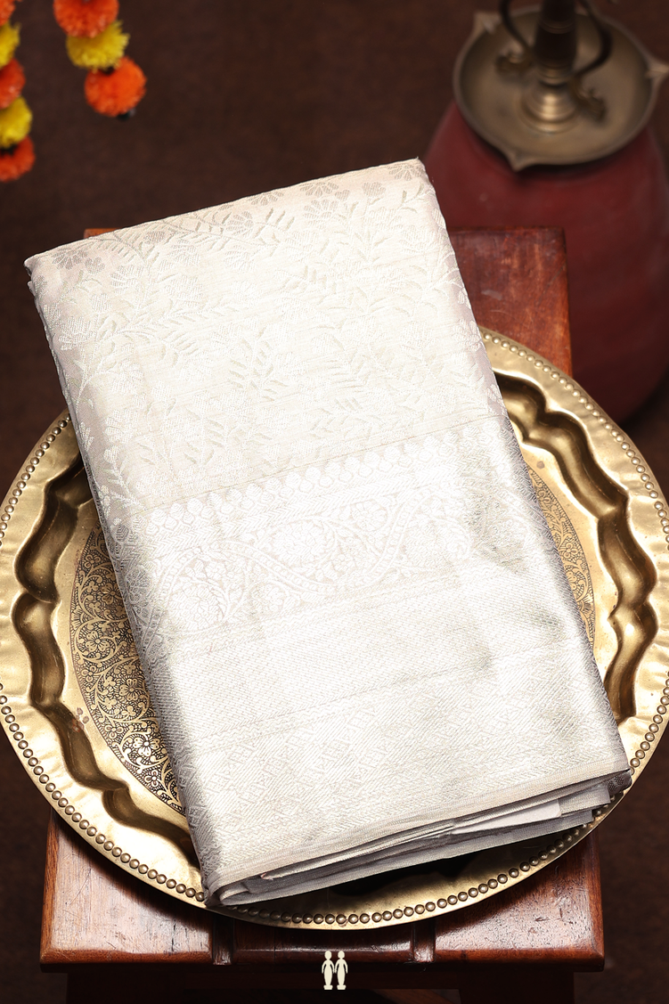 Kanchipuram Silk Saree In White Tissue With Floral Design