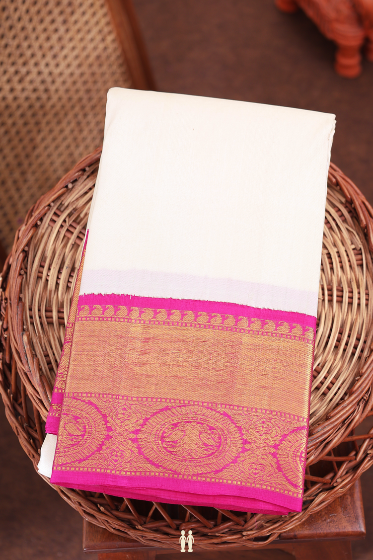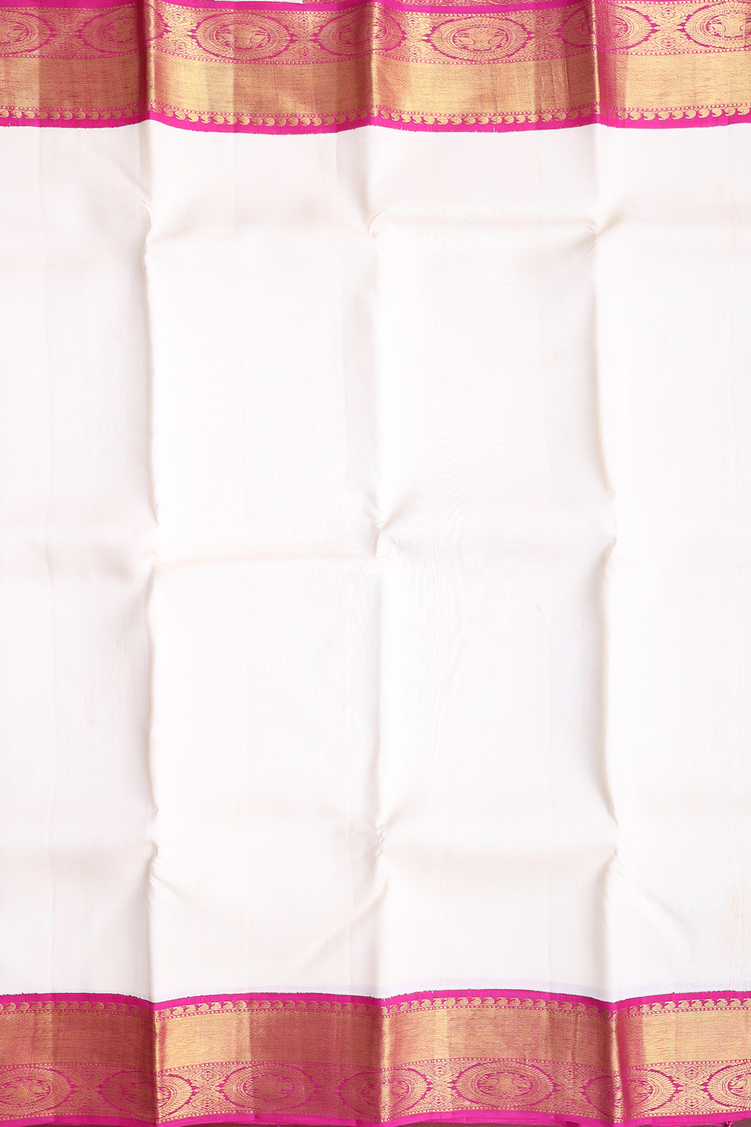 Kanchipuram Silk Saree In White With Contrast Korvai Border
